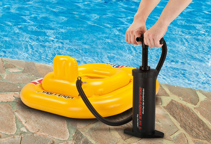 Насос ручной Intex Double Quick III повышенной мощности можно использовать для накачивания любых надувных изделий. В комплект входит 4 насадки-переходника.
