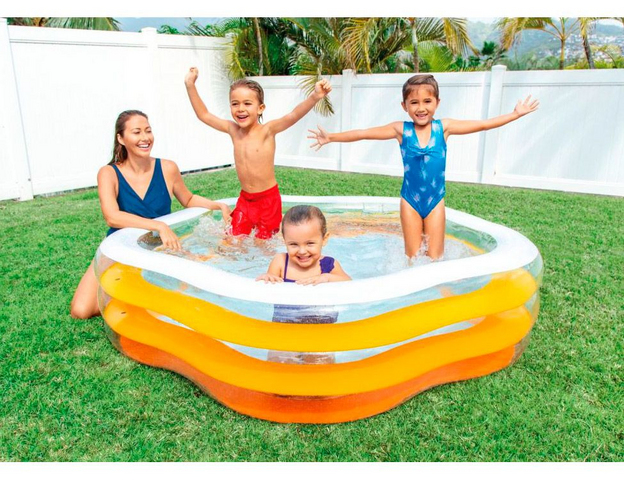 Бассейн Intex Summer Colors станет любимым развлечением для Вас и Ваших детей. Бассейн выполнен в форме пятиугольника с закругленными углами.