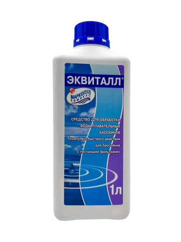 ПРИНЦИП ДЕЙСТВИЯ коагулирующего средства достаточно прост: при добавлении в скиммер препарат обволакивает и связывает частицы грязи в воде, образуя хлопья достаточно большого размера, которые удаляются фильтрами. Вода становится прозрачной и чистой. Эквиталл - коагулянт, созданный на основе полиоксихлорида алюминия, обладает ячеистой "изломанной" структурой, что позволяет в сжатые сроки: от трех до двенадцати часов осаждать любые посторонние примеси и взвеси (в том числе образовавшиеся и после борьбы с водорослями).