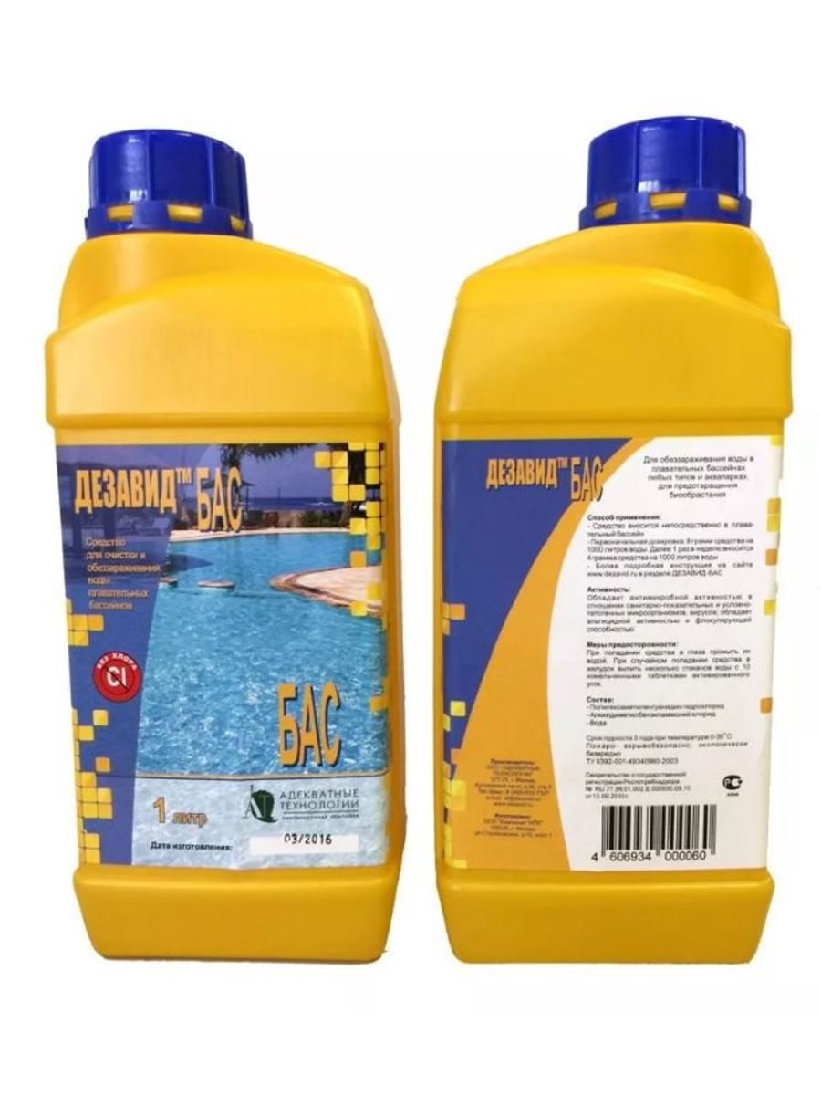 Дезавид Бас для бассейна - универсальная химия для обеззараживания воды, позволяет заменить использование классической триады: хлора (для дезинфекции воды), альгицида (для противодействия биообрастанию) и флокулянта (для очистки воды), что положительно сказывается на экономике обслуживания бассейна.