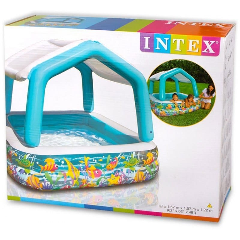 Надувной бассейн с навесом Intex Sun Shade (57470) представляет собой идеальное сочетание безопасности, удобства для малышей и их родителей. Этот яркий и функциональный бассейн защитит детей от ярких солнечных лучей благодаря надувной крыше, которую можно легко снять или установить в зависимости от погодных условий. Несмотря на компактные размеры и небольшой вес, в бассейне достаточно пространства для того, чтобы несколько детей могли одновременно наслаждаться игрой и купанием. Это делает его идеальным выбором для семей с несколькими детьми или для игр с друзьями.
