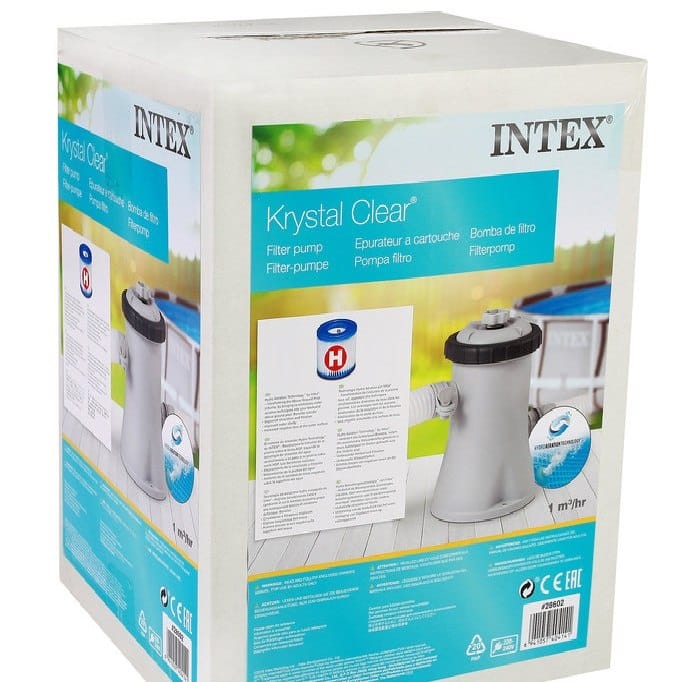 Фильтрующий насос Intex Krystal Clear (28602) очищает воду в бассейне от различных механических загрязнений. Насос пропускает воду через картриджный фильтр (тип Н), где и остаются все загрязнения (сор, листья, пыль, грязь). Подключение к штатным отверстиям бассейна осуществляется при помощи двух гофрированных шлангов диаметром 32 мм. В комплект входит сменный фильтр, комплект соеденителей, в том числе впускной фитинг с технологией Hydro Aeration и упаковка для хранения. Ресурса картриджа в среднем хватает на 2-3 недели использования. Фильтр-насос Intex Krystal Clear, способный пропускать через себя 1250 л/час, рекомендован для каркасных и надувных бассейнов диаметром/длиной от 244 до 366 см и объёмом до 7900 л.