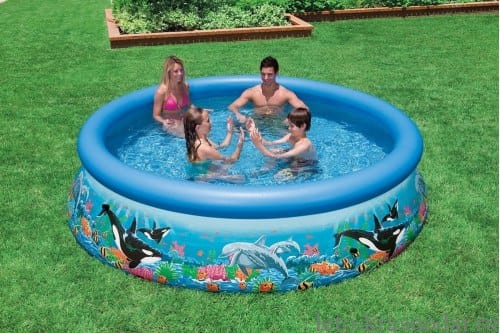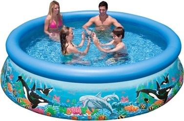 Лучшее время для игр в воде - жаркие летние деньки! Дети в восторге от плесканий и ныряний, а взрослым, как правило, больше нравится степенное расслабляющее покачивание на волнах! Как же часто летом мы мечтаем оказаться на берегу речки или озера, чтобы почувствовать освежающие прохладу! Позвольте себе подобное удовольствие благодаря надувному бассейну серии «Easy set» от компании Intex, на внешних стенках которого представлен забавный рисунок на морскую тематику. Эти удобные и практичные бассейны для использования на свежем воздухе можно установить у себя в саду просто и быстро без предварительной подготовки грунта. Достаточно проделать три этапа: разложить бассейн на ровном месте, надуть первую камеру и включить воду. Бассейн сам «установится» и примет нужную форму (инструкция по установке предусмотрена на DVD прилагаемом в комплекте). На установку Вам понадобится около 10 минут, и вы сможете наслаждаться своим собственным «маленьким озером», плавая и нежась на солнце.