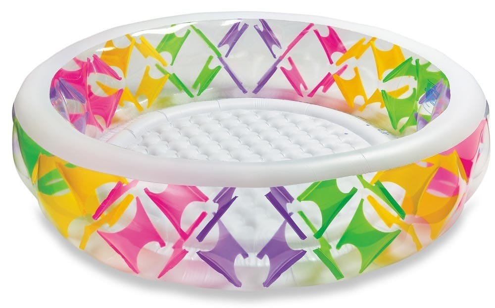 Прозрачный бассейн с крестообразными вставками. Интересный дизайн бассейна добавит неповторимости Вашему участку. Мягкие, широкие надувные борта позволят детям играть на них. Надувной пол добавит комфорта. На случай прокола имеется ремкомплект. Сливной клапан.