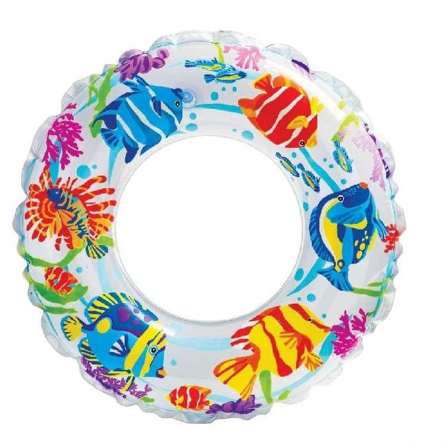 Оригинальный надувной круг Intex Transparent Rings с яркими тропическими рыбками. С его помощью малыш будет уверенно держаться на воде, и научиться плавать. Гладкий внутренний шов.