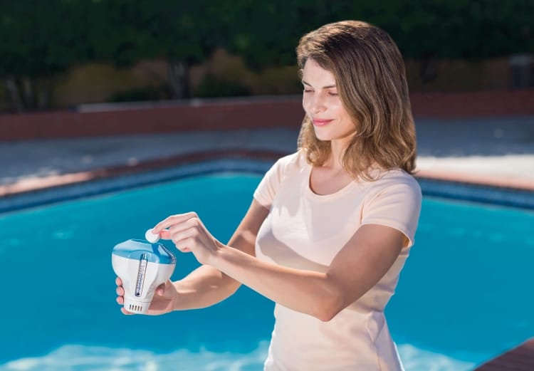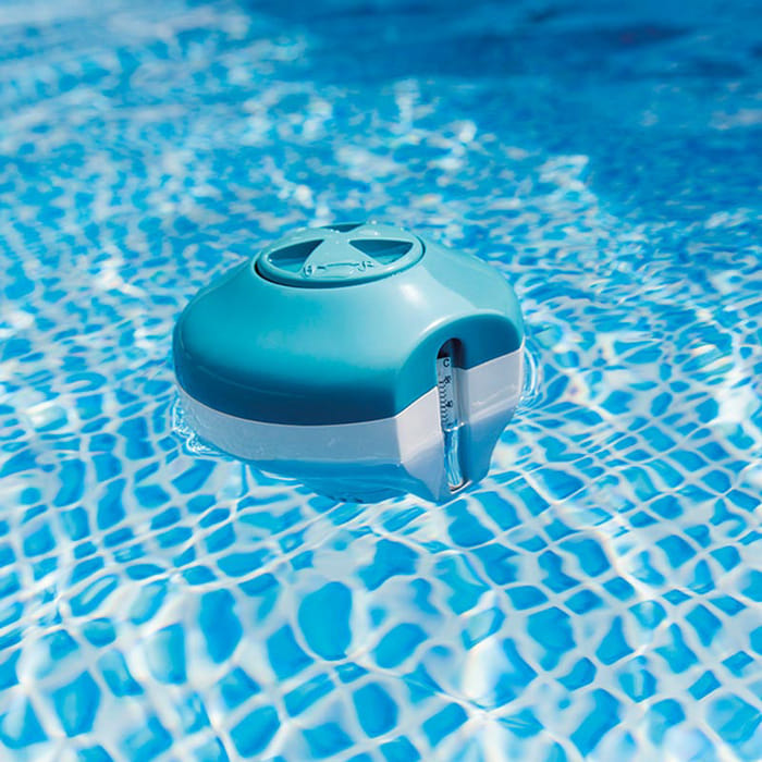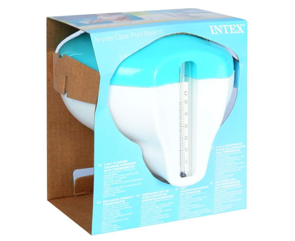 Термометр поплавок для бассейна с дозатором от компании Intex. Поплавок-дозатор предназначен для постепенного растворения хлорных таблеток или гранул и измерения температуры воды в бассейне. Вы можете поместить в него до семи таблеток весок 20 грамм просто сняв верхнюю крышку. С помощью регулируемого отверстия в основании поплавка, можно установить необходимую скорость подачи хлора. Диспансер подходит для таблеток диаметром до 2,54 см. Благодаря встроенному термометру со шкалой Цельсия и Фаренгейта, вы всегда будете знать, насколько прогрелась вода в бассейне. Поплавок изготовлен из безвредного полипропиленового материала, не содержит в своём составе стекло и ртуть, имеет крышку с блокировкой.